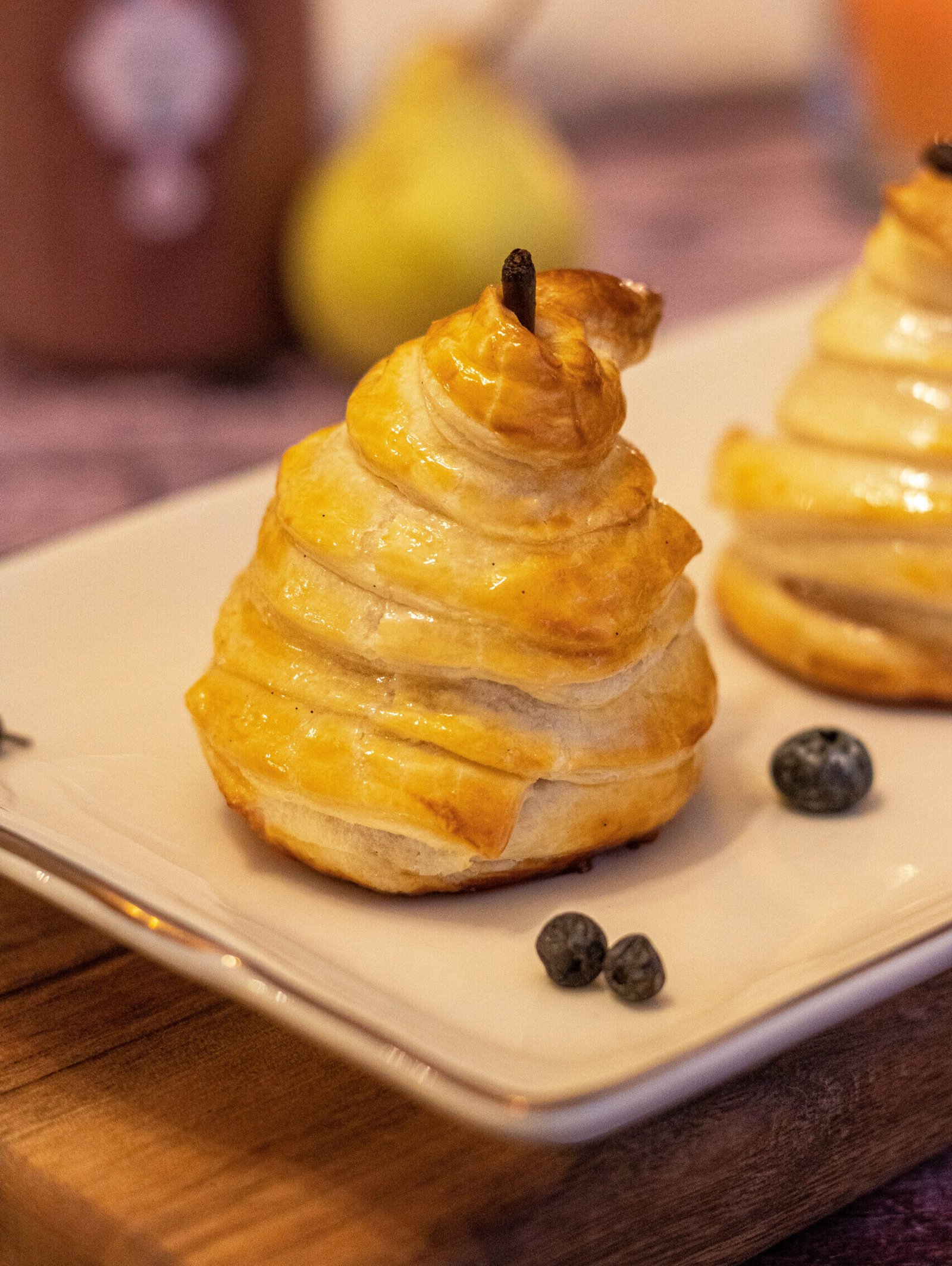 Poires feuilletées au miel brassé aux myrtilles